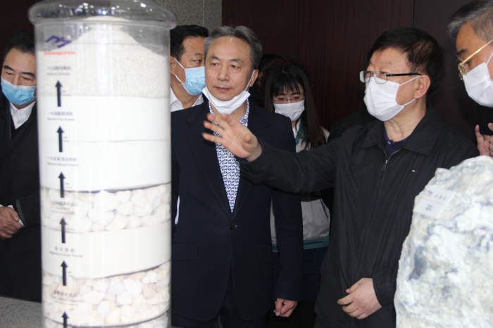 調(diào)研過程中,李曉安副主席詳細(xì)詢問了鎂化工產(chǎn)品應(yīng)用領(lǐng)域、工藝過程、產(chǎn)品附加值等方面情況,董事長(zhǎng)張榮陽一一做了介紹。